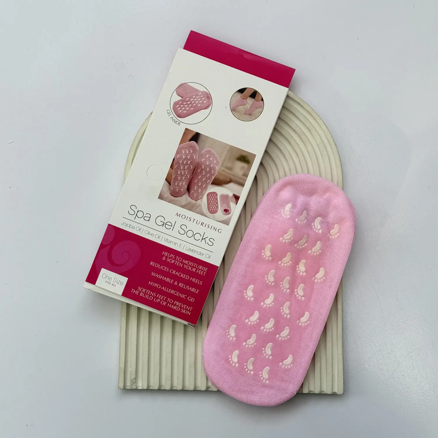 این جوراب محصولی کاربردی است که با سیلیکون مخصوص داخلی طراحی شده است. سیلیکون باعث میشود مواد مغذی و مرطوبکننده بهطور یکنواخت روی پوست پاشنه پا پخش شود و تاثیر بهتری داشته باشد.