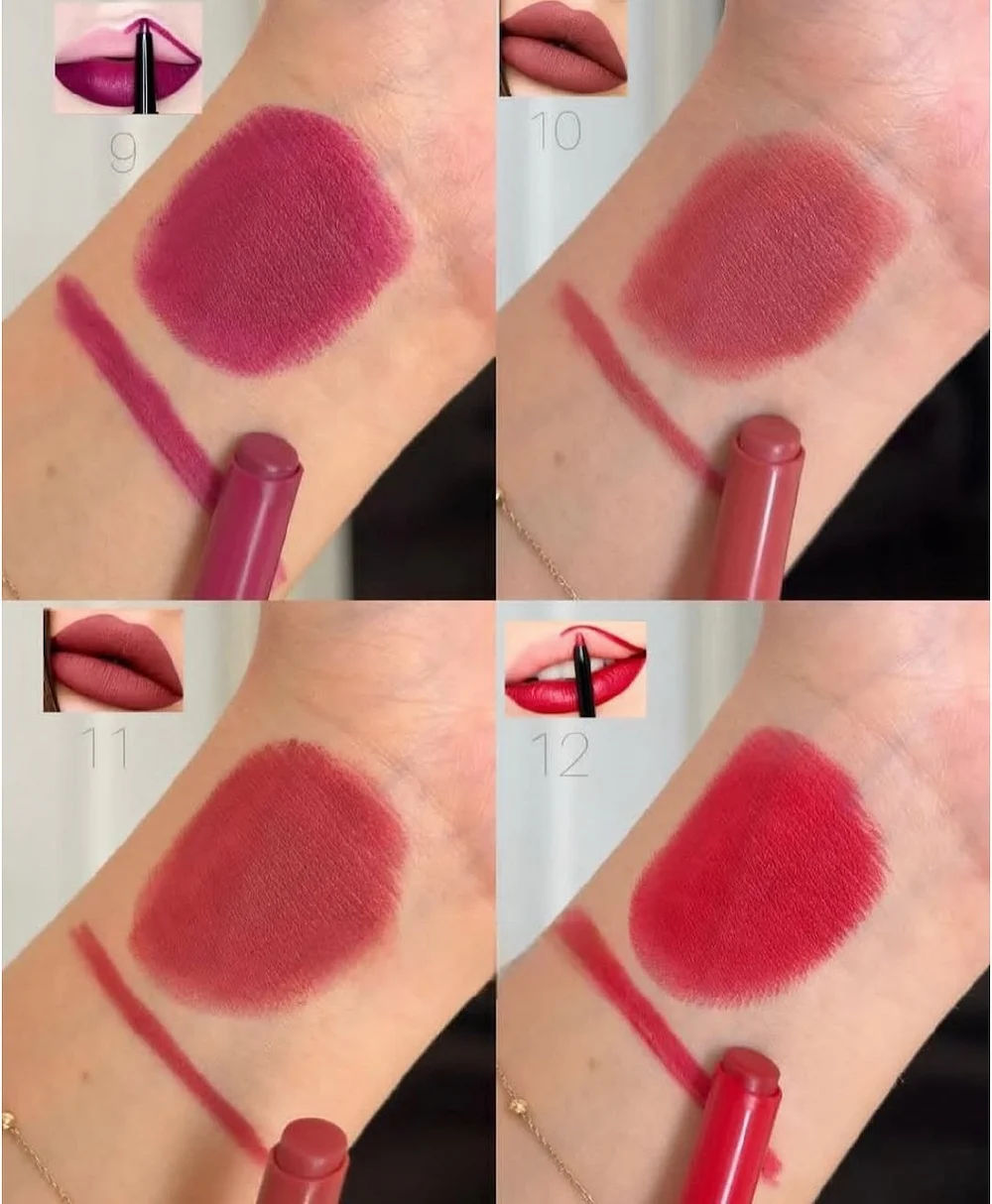 • سمت دیگر آن خط لب (lip liner) است که معمولاً به شکل مدادی یا کرمی است و دقیقاً همرنگ رژ لب طراحی شده.